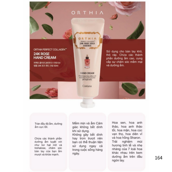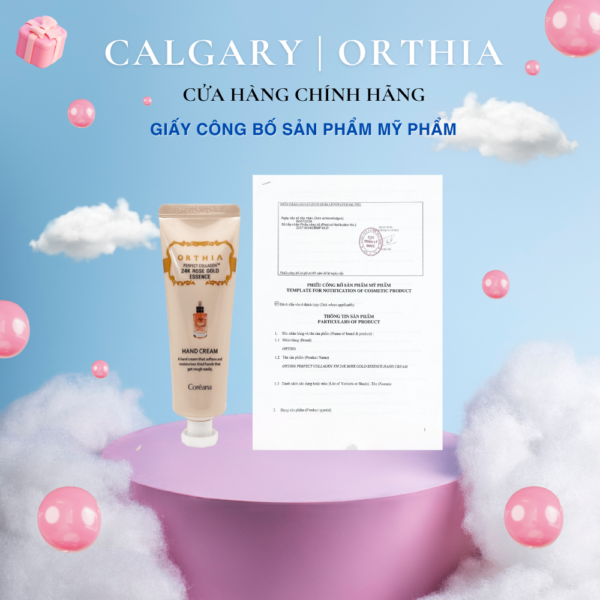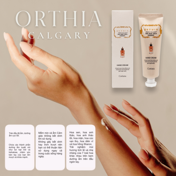 • Tên sản phẩm: Orthia Perfect Collagen 24K Rose Gold Essence Hand Cream