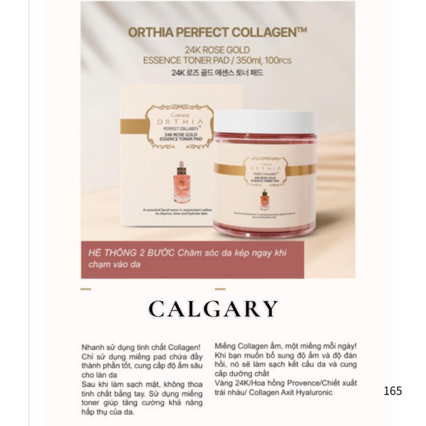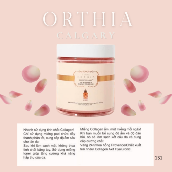 - Tên sản phẩm: ORTHIA Perfect Collagen 24K Rose Gold Essence Toner Pad Dung tích: 350ml (100 miếng)